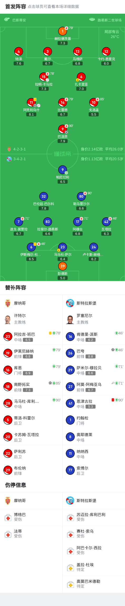 第48分钟,巴洛贡单刀挑射破门,摩纳哥两球领先